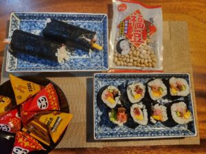 ご多分にもれず豆まきをして恵方巻を作り南南東に向かって願い事をしながら